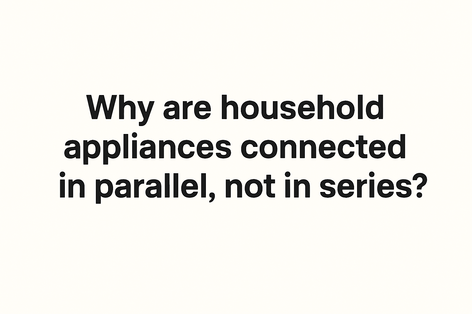 In contrast, if appliances were connected in series, the total supply voltage would be divided among them. This would cause some devices to receive too little voltage and others too much, leading to improper functioning or even damage. Moreover, in a series circuit, if one appliance fails or is switched off, the entire circuit would be broken, and all other devices would stop working—similar to how old series-connected Christmas lights behave.