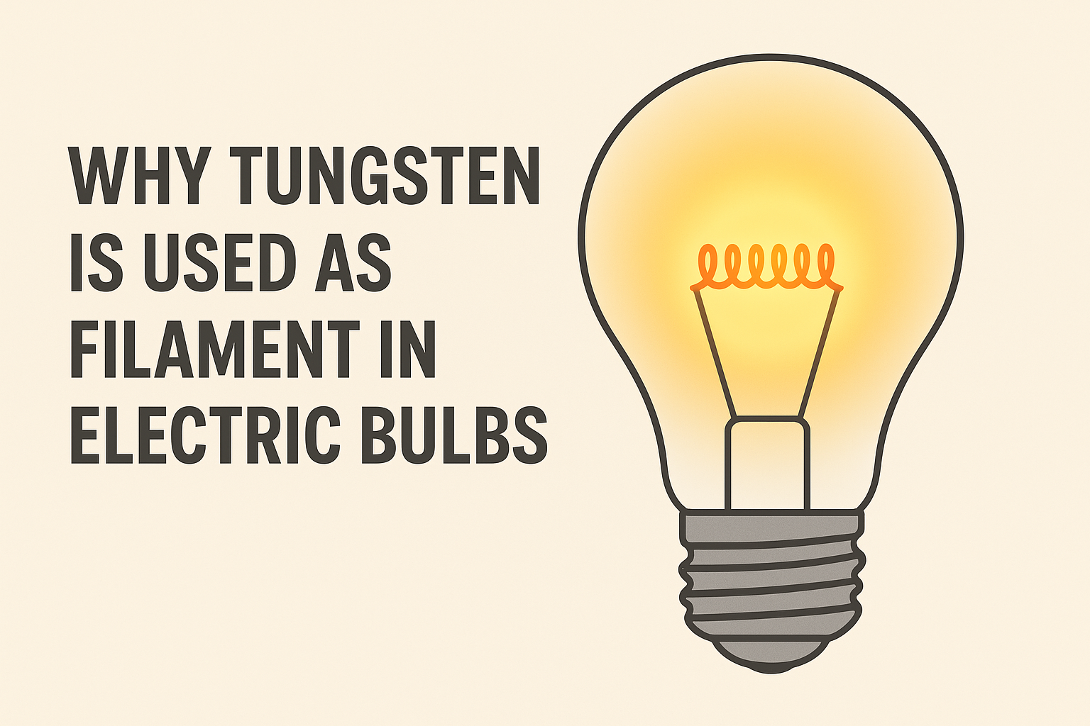 When an electric current passes through the filament, it gets heated due to the resistance of the material. The filament must be able to withstand very high temperatures (around 2500°C to 3000°C) without melting or evaporating quickly — and tungsten excels in this regard.